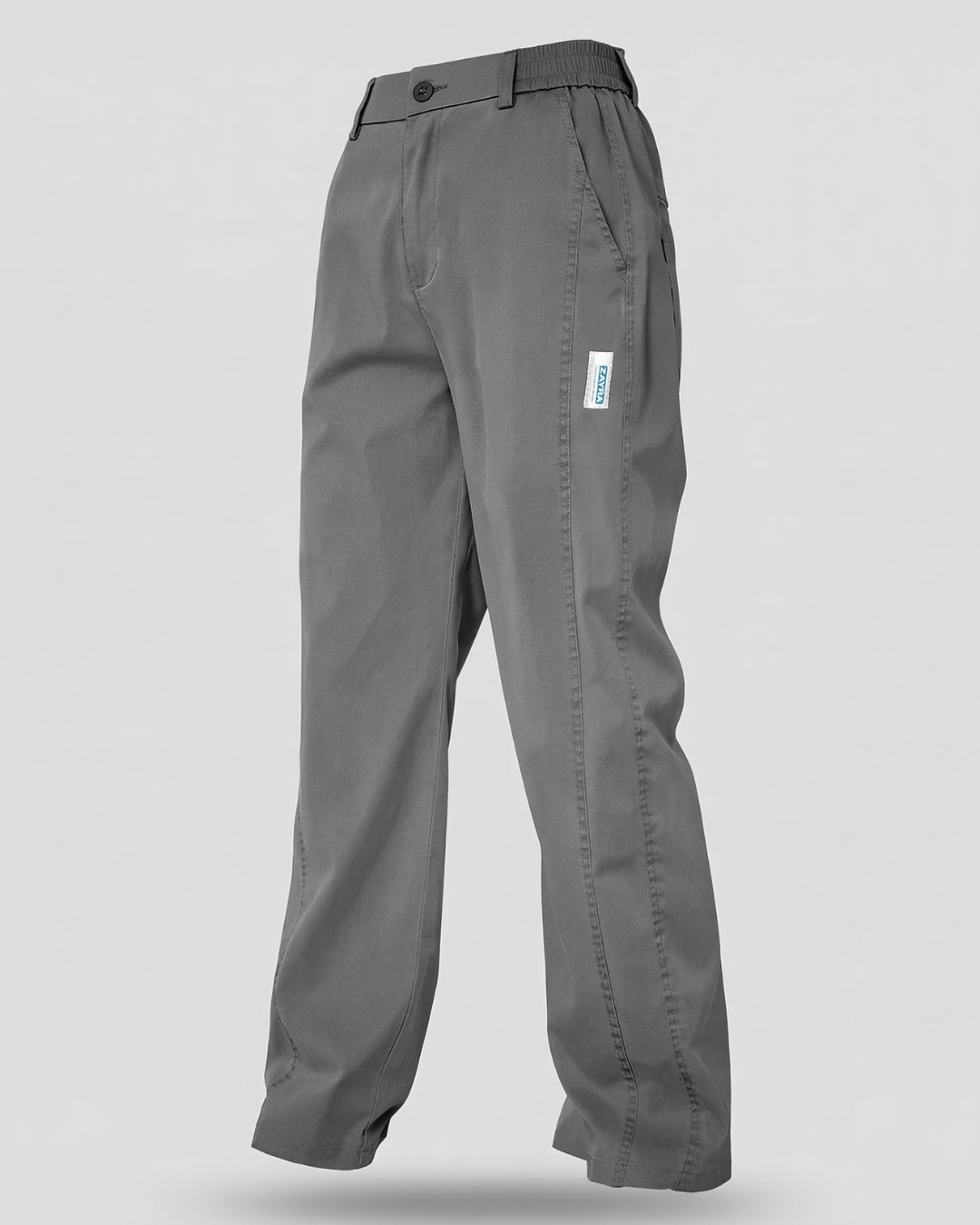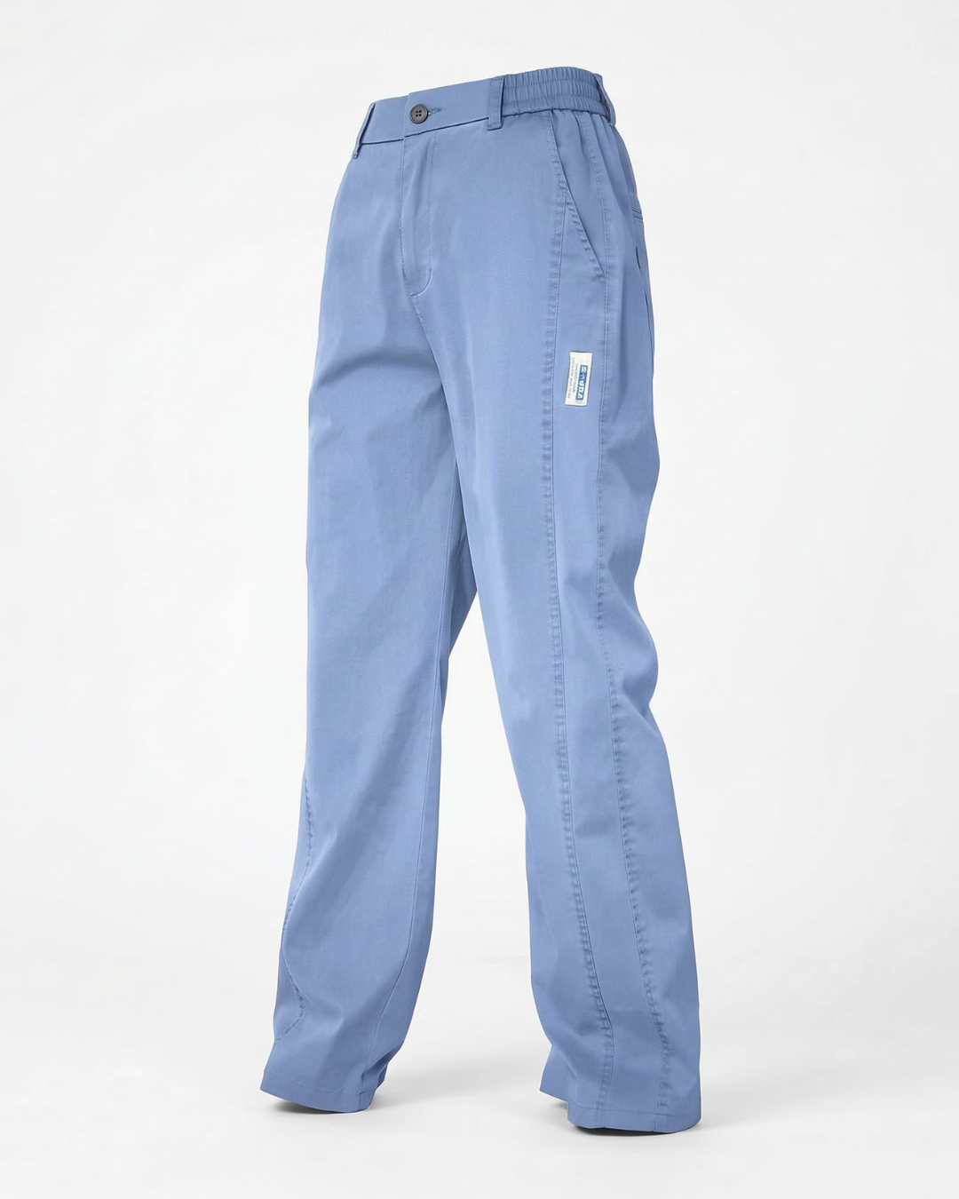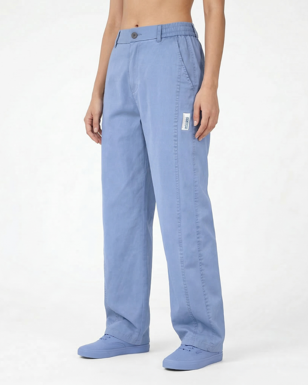 Inclui pregas frontais que garantem um cair fluido e um ajuste superior na zona da anca, proporcionando conforto e sofisticação.
