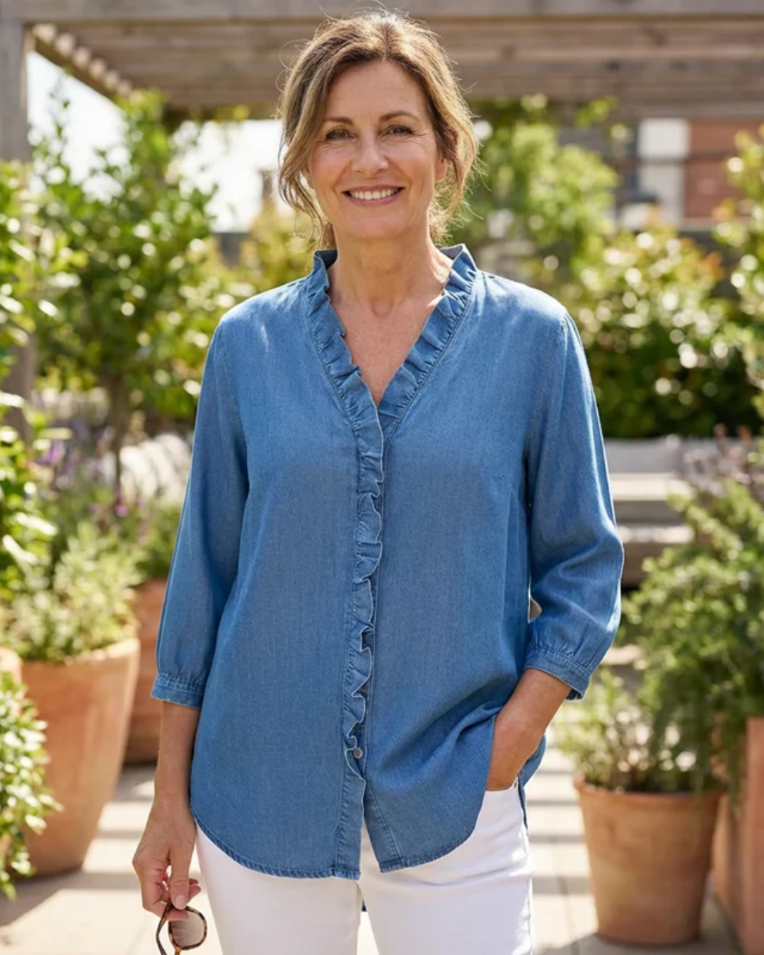 Decote em V com Detalhe de Folhos Refinados