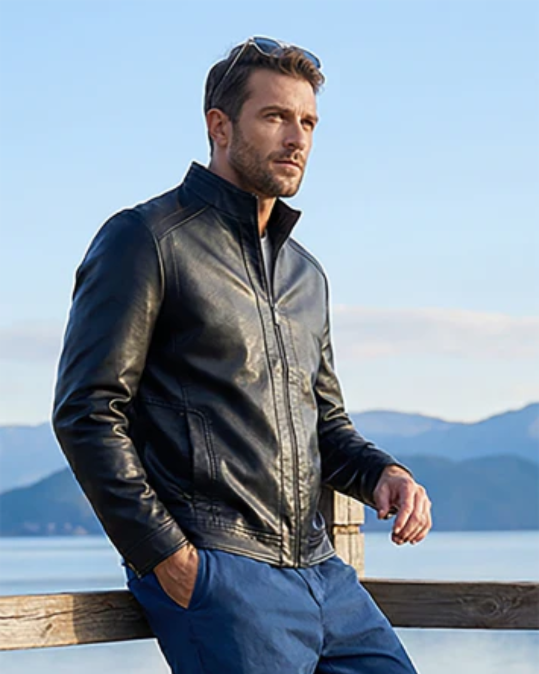 Casaco de pele com forro térmico para homem